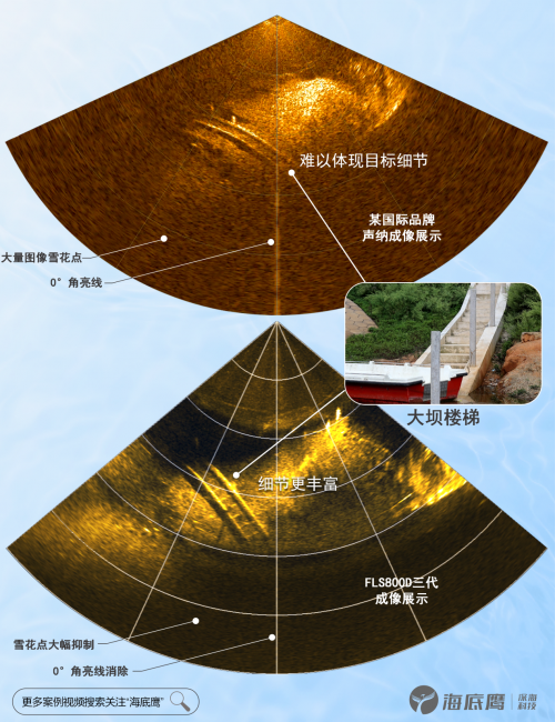 图像清晰度提升30%丨8大亮点打造多场景智能化应用 来自海底鹰深海科技的前视目标搜探声纳FLS800D,在上市一周年之际焕新升级发布,国产前视目标搜探声纳正式进入第三代。 此次升级全面提升硬件、软件、算法性能,8大升级亮点涵盖图像成像能力提升、手持/平台适装性提升、平台搭载适配性提升、工况适配性提升。