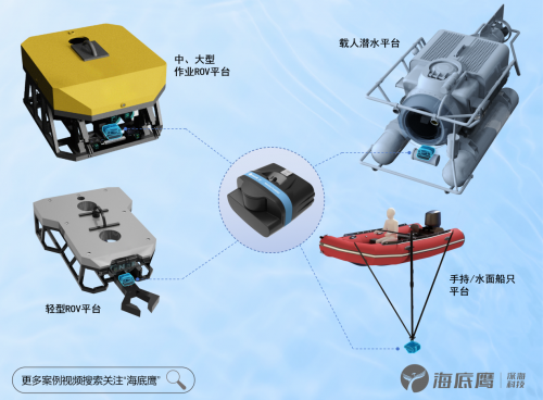 壳体材质可选配铝合金/不锈钢/钛合金,适配更多深水任务,最深可达1500米。 多场景智能化应用 1、水下目标搜索