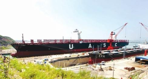 巨轮处女航就发生碰撞事故 从华东船厂一号码头到二号船坞仅有几百米距离,但却需要5艘拖船才能将阿尔齐拜号拖动。红黑相间的船身足有5层楼高,停靠在一旁的金海翔号,是我省巨无霸级货轮,但在它面前瞬间变“萌”,仿佛成了一具模型。 数天前,在厦门海域,阿尔齐拜号与香港籍货轮康平号相撞,阿尔齐拜号底部被撕开了一个大口子,但仍可以正常行驶。华东船厂工程建设指挥部总指挥李世春介绍,阿尔齐拜号是两个月前在韩国下水的一艘新船,船主是阿联酋人,船是科威特籍,共有40名船员,处女航就发生了事故。