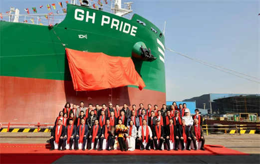 1月14日,江海潮涌,国航远洋新造首艘63500DWT散货船“GH PRIDE”轮交付仪式,在江苏南通隆重举行。 来自船舶制造、货主物流、航运运营、金融租赁等领域的众多合作伙伴齐聚现场,江苏海通海洋工程装备有限公司(以下简称“江苏海通”)、嘉吉投资(中国)有限公司、招商明华、OLDENDORFF、NORDEN、第一中央汽船株式会社DAIICHI、敖仕海运AMC、航运界、淡水河谷VALE、利比里亚船旗国、玉柴船舶动力股份有限公司、信德海事、中国船级社、上海双希海事发展有限公司、中集同创长江(杭州)供应链有限公司、信达金融租赁股份有限公司、上海船舶研究设计院(SDARI)等单位的相关领导嘉宾共同见证这一重要时刻。 它的名字里带着“自豪”(Pride)。这份自豪,属于所有缔造者——从国航远洋对于未来船队的构想,到设计方上海船舶研究设计院的蓝图,再到建造方江苏海通工匠的焊花,随着“GH PRIDE”轮成功交付,国航远洋旗下第一艘超灵便型船舶正式入列,标志着公司船队结构升级与运营能力拓展迈出了里程碑式的一步。 仪式现场,江苏海通副总经理王鹤飞致欢迎辞,向到场嘉宾致以诚挚问候,回顾了与国航远洋的精诚合作历程;中国船级社南通办事处主任于得会等嘉宾先后登台致辞,对“GH PRIDE”轮的顺利交付表示祝贺,高度肯定该船在技术创新与绿色环保方面的突出优势。 国航远洋副总裁张轶女士受邀担任新船教母并主持剪彩与掷瓶礼仪式。伴随着清脆的香槟瓶碎裂声,祝福与期许随浪花绽放——愿这艘崭新巨轮承载梦想与希望,驰骋万里碧波,书写航运辉煌。 作为一艘集安全、高效、低碳、智能于一体的现代化散货船,“GH PRIDE”轮从设计到建造全程贯穿着绿色发展理念,核心优势尽显硬核实力: 能效卓越,低碳领跑 该船型具备大载重量、超大货舱舱容,配备4台克令吊和抓斗,适货性更强。船舶采用新颖船体线型,搭配ESD能源效率提升装置(预导流及消涡鳍),辅以低风阻上建设计,大幅降低航行油耗;精细化结构设计与全专业轻量化研究,在保障CSR-H安全标准的同时提升载重量,超大货舱舱容进一步增强适货性。其EEDI指标达到IMO Phase III要求,氮氧化合物(NOx)排放满足Tier III标准,真正实现绿色航行。